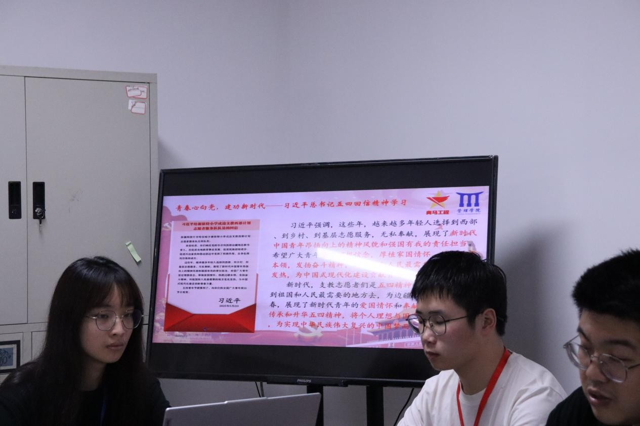 会议最后,王镇宁老师对青马班本学期理论学习活动进行了阶段性总结,从成效和不足两方面进行了点评,强调青马班学员要坚定理想信念,增强理论学习,坚持知行合一。在暑期社会实践活动部署环节,王镇宁老师结合团省委等部门“幸福河湖·青马学员说”微视频大赛向全体青马班学员进行动员,鼓励全体学员积极参与社会实践,将学习成效转化为不竭的实践动力,锤炼责任担当,展现青年力量。