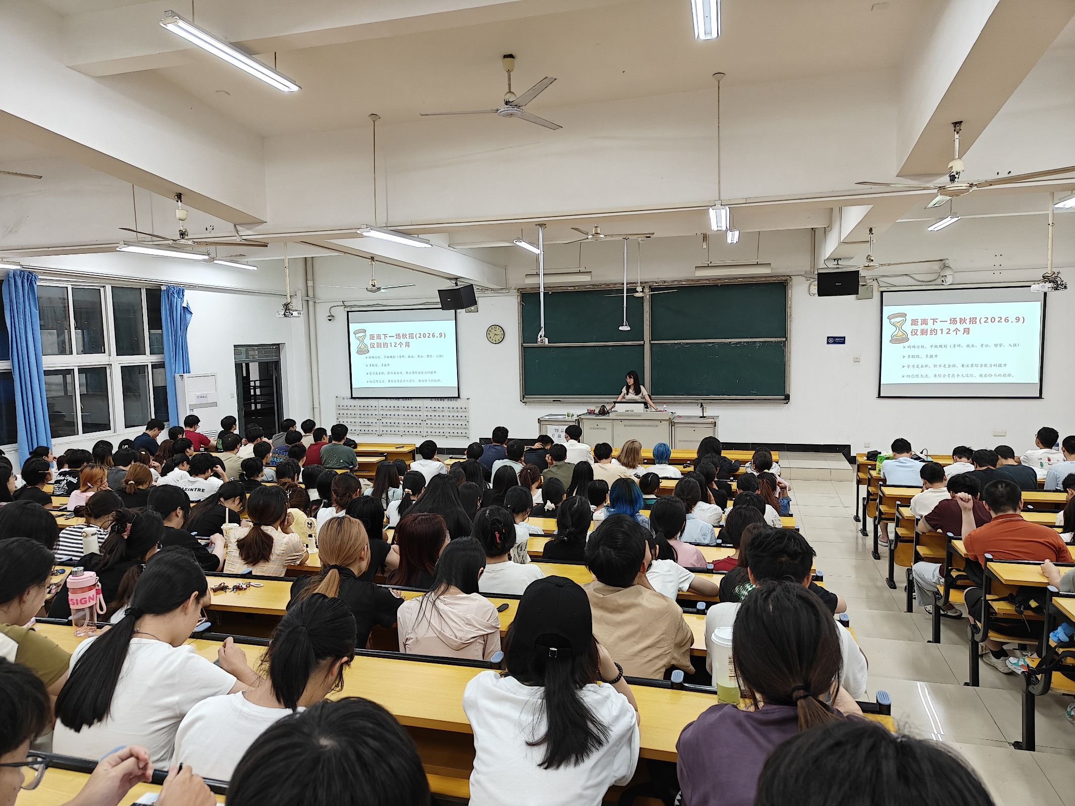 针对大三作为大学阶段的“决胜期”与“关键窗口期”这一特点,沈老师着重强调了科学规划与精准定位的重要性。她系统梳理了考研、留学、直接就业、考公考编等主要发展方向的关键时间节点、必要准备要点以及常见误区,提醒同学们务必提前谋划,“不打无准备之仗”,要基于个人兴趣、特长与实际情况理性选择路径,切忌盲目跟风。沈老师还结合自己在大学与研究生阶段的经历现身说法,为同学们的学业规划提供了具体借鉴。她特别推荐同学们积极利用教育部学生服务与素质发展中心的“学职平台”等优质资源,主动破除信息壁垒,持续提升自身的综合素养与未来竞争力。