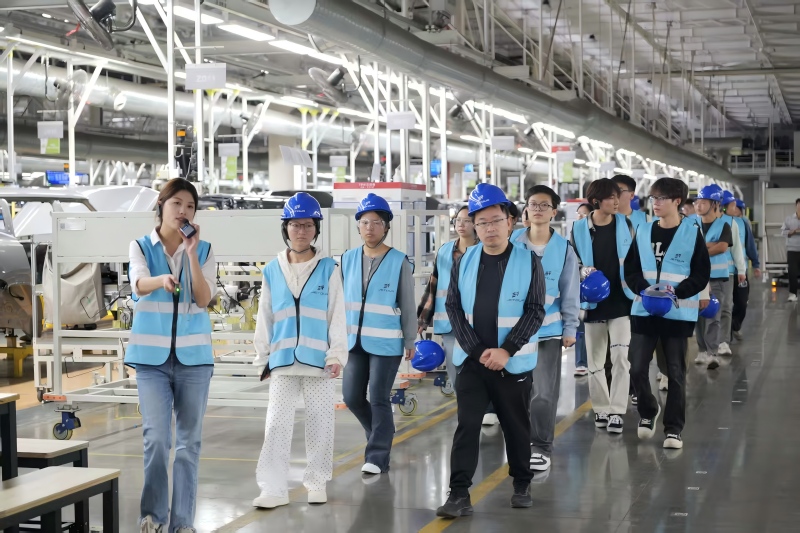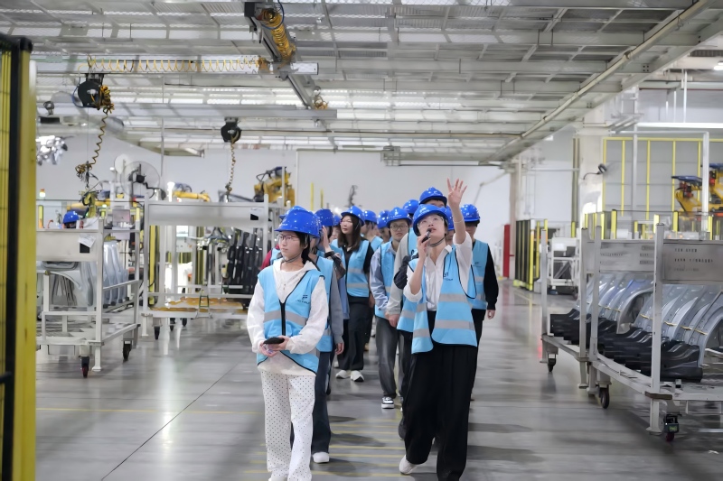 师生一行受到了林娟经理及其团队的热烈欢迎与周到接待。在林经理的带领下,师生们首先通过企业介绍环节,系统了解了公司的战略布局、发展沿革以及在当前市场环境中的竞争优势;随后进入现代化的生产车间,实地观摩了从冲压、焊装、涂装到总装的完整汽车制造流程。林经理及现场技术人员细致讲解了各环节的核心工艺、技术要点以及生产运作中的管理实践要求。