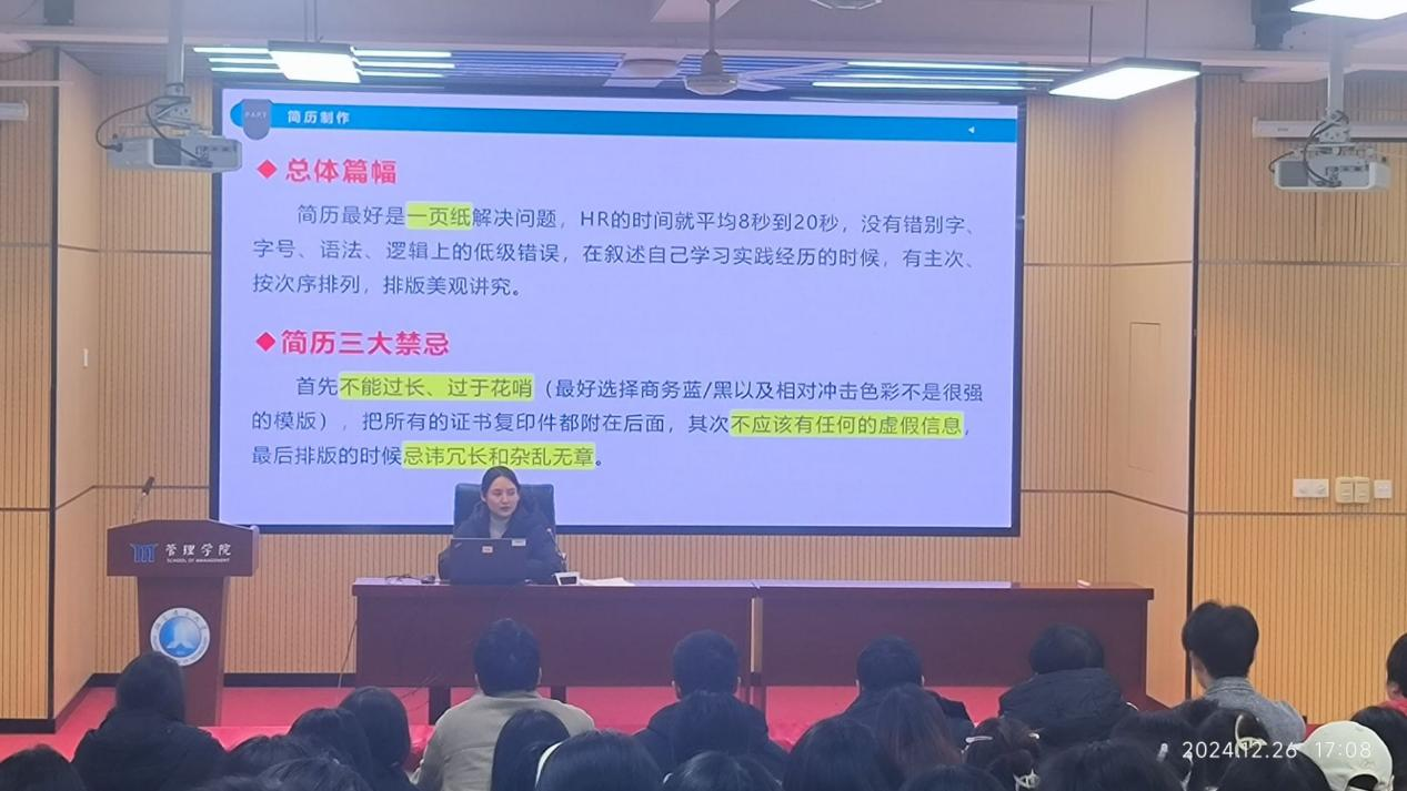 除了学业上的要求,姚羽珊还提到了制作简历的重要性和注意事项。她建议同学们在备考之余,提前思考自己的职业规划,并着手制作简历。简历在求职过程中能够直观展示个人的教育背景、专业技能和实践经验等内容。因此,同学们在制作简历时要注重细节,突出自己的优势和特长,为未来的就业做好充分准备。