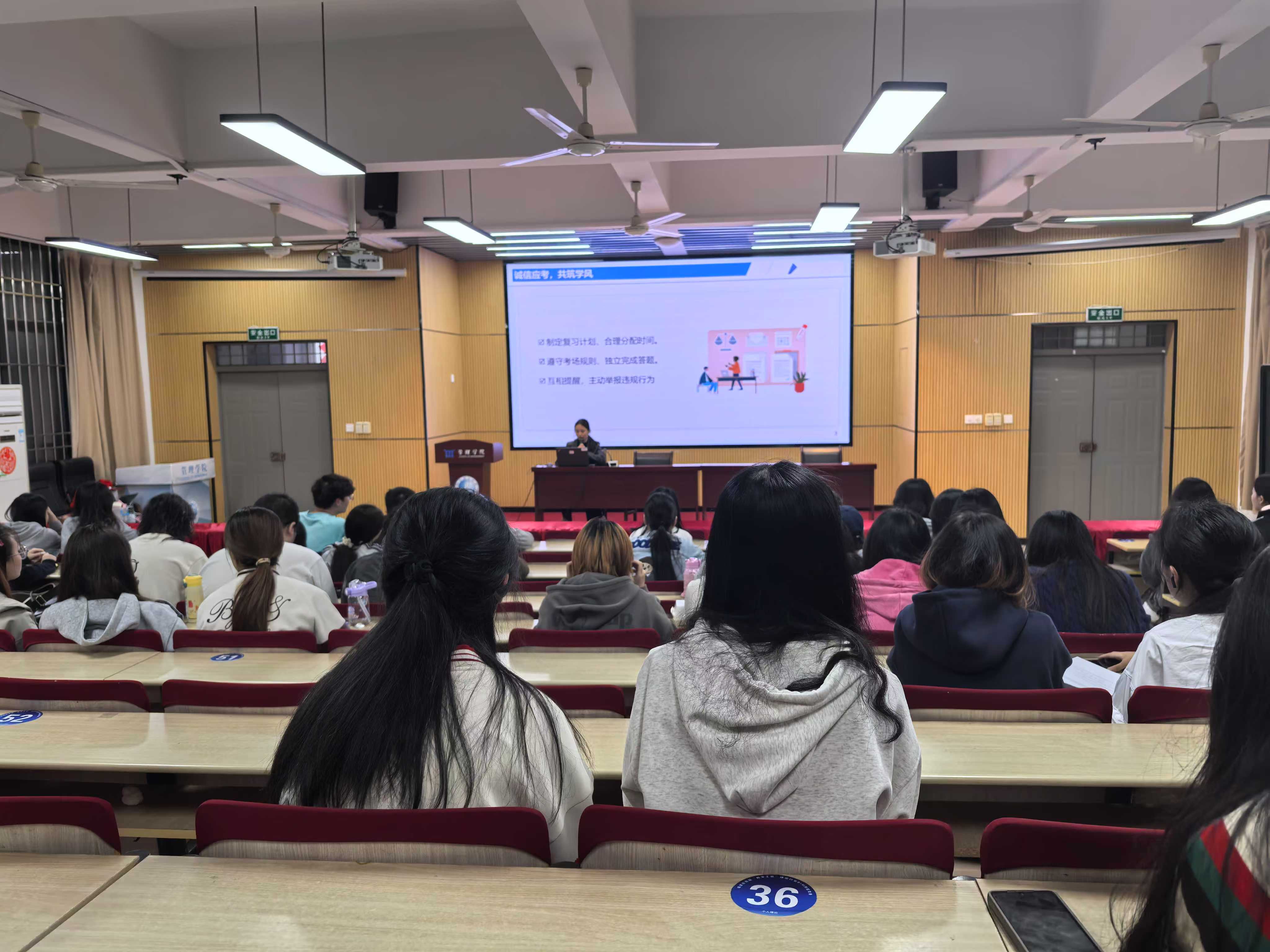 2025年4月24日晚,2022级会计、审计、公共管理专业全体学生在厚德楼101教室召开主题年级大会。会议由辅导员姚羽珊主持,围绕五一节前安全教育、期末诚信应考、网络安全、宿舍与课堂文明等多项内容进行了集中宣讲与动员。