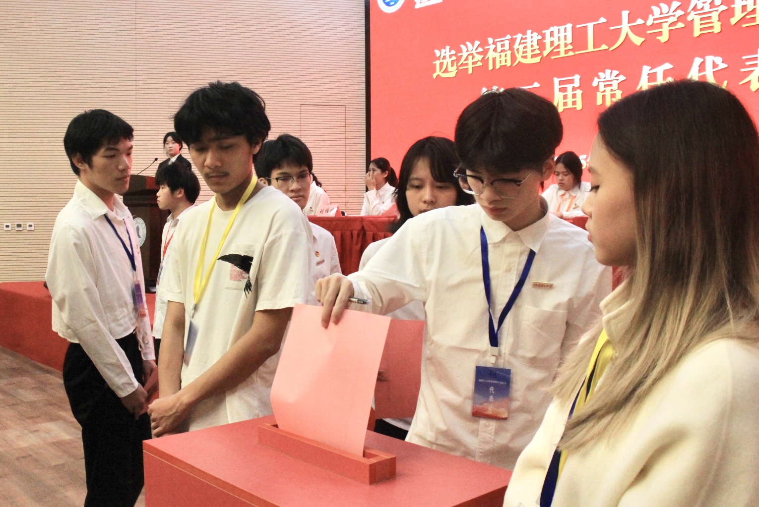 第三次全体会议中,大会团体代表和学生代表通过无记名投票选举产生福建理工大学管理学院第三届学生会主席团成员及福建理工大学管理学院第三次学生代表大会常设机构。最后,新当选的学生会主席团成员依次上台发言,纷纷表示将不忘初心、积极进取,带领全院学生会在未来的工作中更上一层楼。