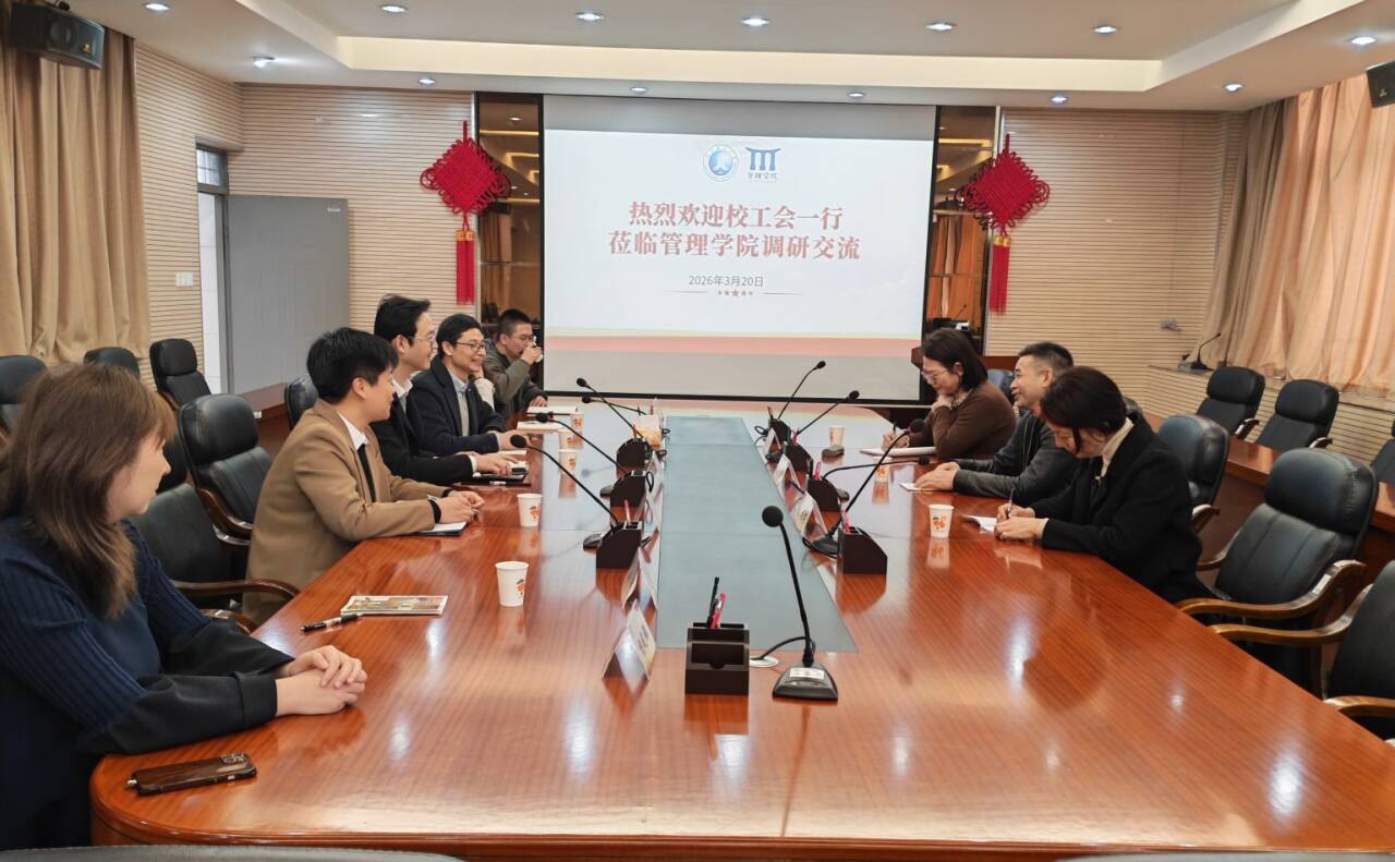 2026年3月20日上午,校工会主席谢鸿飞一行莅临我院开展工作调研。调研交流活动由学院党委书记赵健主持,学院工会主席、部分工会委员、工会小组长及工会联络人参加了座谈会。