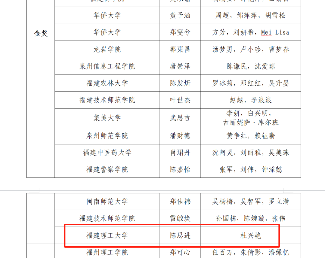 近日,福建省教育厅公布了第十八届福建省大学生职业规划大赛获奖名单。管理学院2024级审计学专业学生陈思进获成长赛道高教组金奖,杜兴艳老师获优秀指导教师奖。