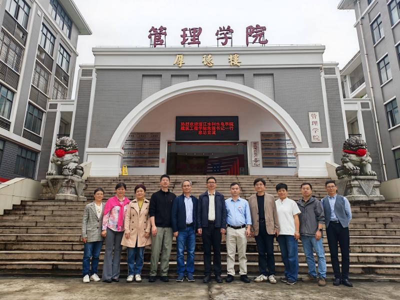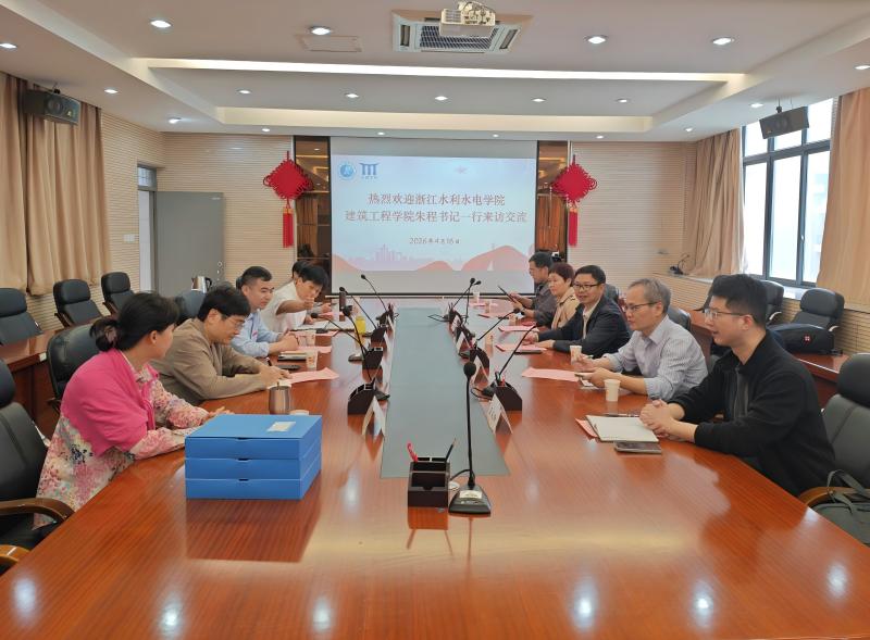 2026年4月16日下午,浙江水利水电学院建筑工程学院党委书记朱程一行5人来院交流。校教务处副处长马刚峰和学院副院长李小兰予以热情接待,工程造价专业负责人和相关专任教师出席座谈会。会议由副院长李小兰主持。