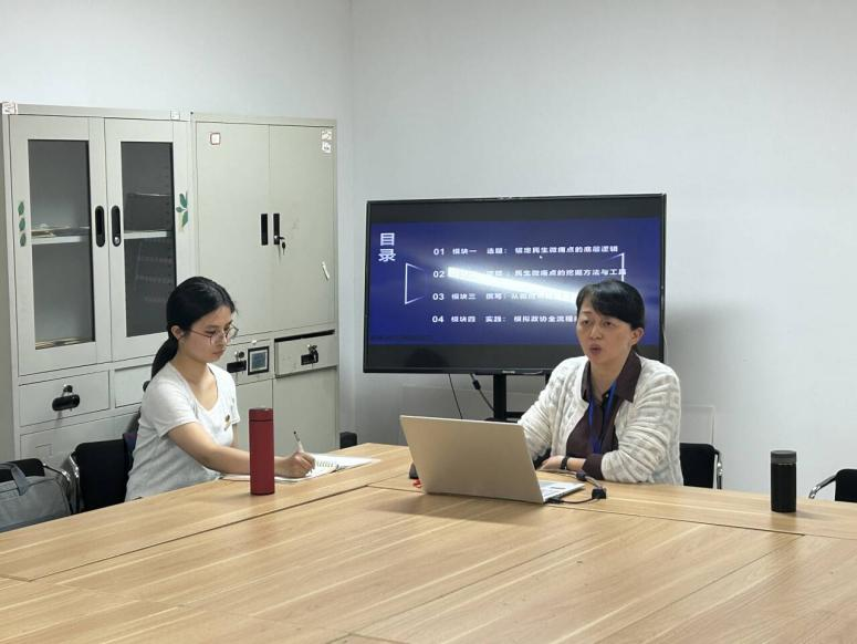 课程中,戴雯老师以福州本土民生案例为切入点,结合自身实践经历,系统讲解模拟政协提案的核心逻辑与写作方法。她围绕民生痛点观察、选题方向确定、内容框架搭建、建议可行性提炼等内容展开阐述,引导学员从身边小事出发,发现社会需求、梳理现实问题、提出合理对策。在交流答疑环节,学员结合日常观察踊跃提问,戴雯老师针对性答疑解惑、细致指导,为大家理清创作思路、破解实践困惑。整场授课内容翔实、贴合实际,理论讲解与实践指导相结合,兼具专业性与实用性。
