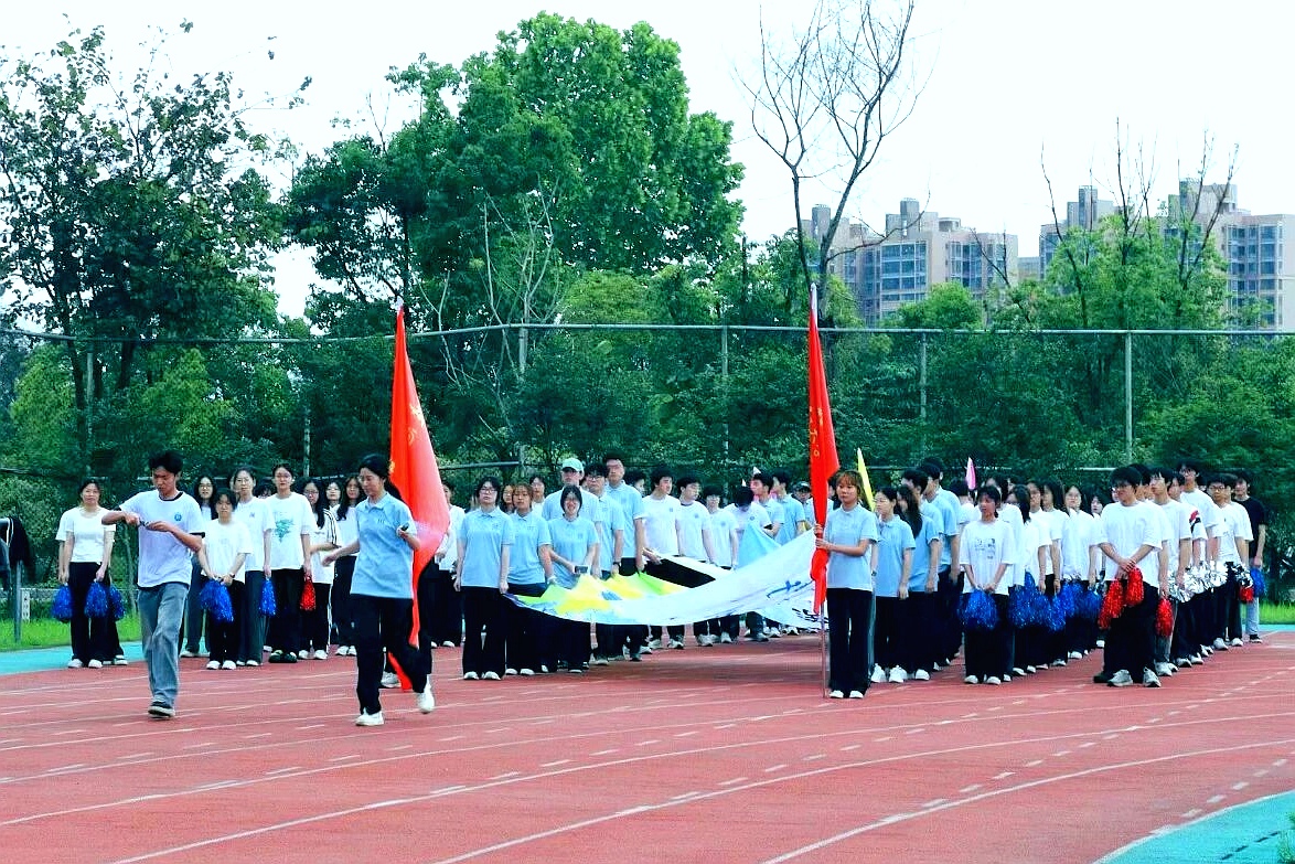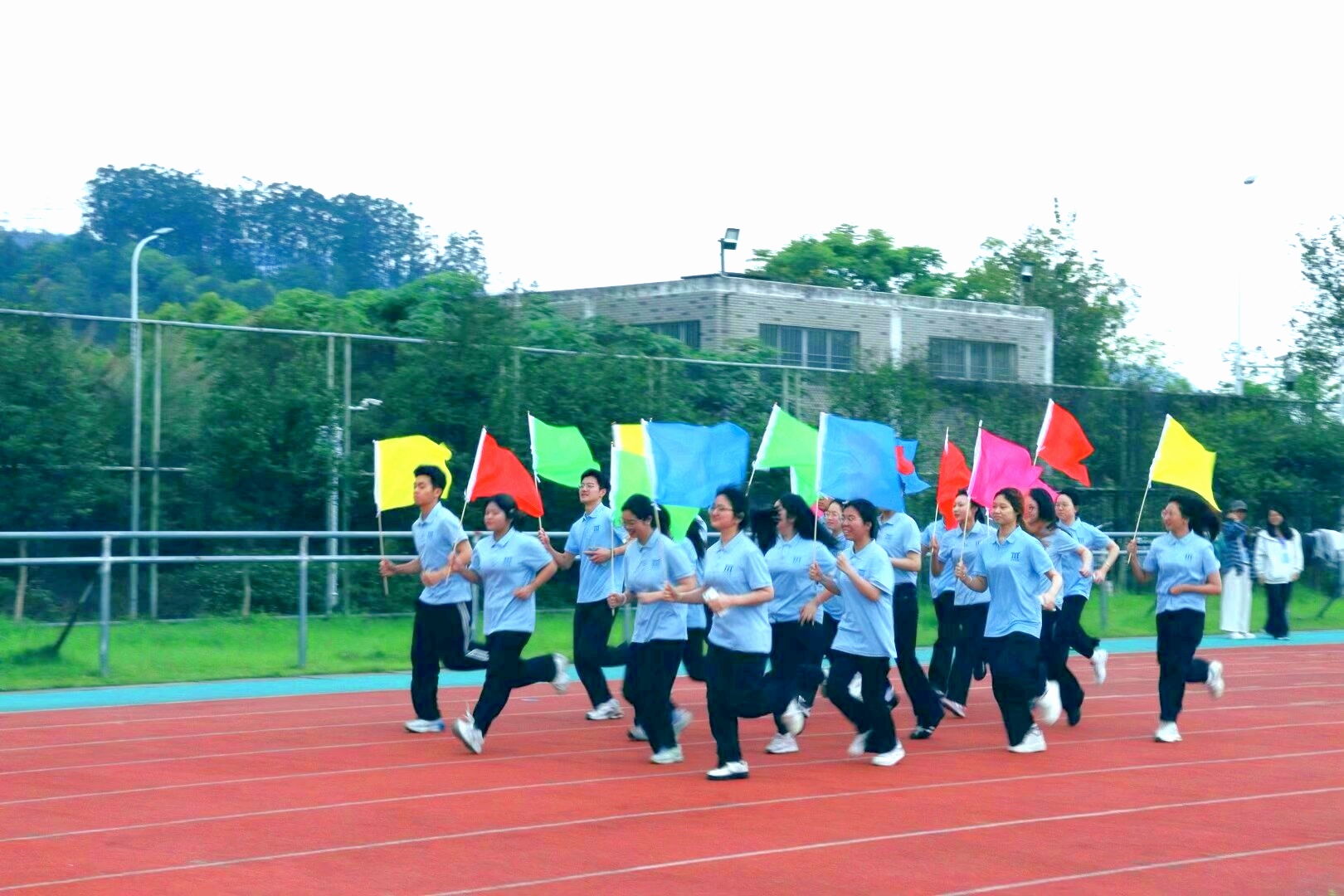 运动会开幕式庄重有序、氛围热烈。仪式伊始,全体师生整齐列队、精神抖擞,伴随着雄壮嘹亮的国歌声,五星红旗冉冉升起,全体人员肃立致敬,爱国情怀在心中激荡。随后,两个学院方阵队依次登场,队员们步伐整齐、精神昂扬,迈着铿锵有力的步伐走过主席台,充分展现了我院学子的青春风采与团结气势。方阵展示结束后,裁判员代表与运动员代表依次上台宣誓,裁判员代表承诺将严格恪守公平公正原则,认真履行裁判职责,确保赛事有序开展;运动员代表表态将发扬体育精神,尊重对手、服从裁判、顽强拼搏、赛出风采。宣誓结束后,主持人宣读了运动会赛程安排、竞赛规则及纪律要求,正式宣布本届田径运动会开幕。