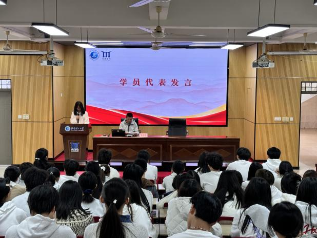 学员代表赵怡鹭结合自身学习经历分享感悟。她表示,通过本期系统的党课学习,对党的发展历程、基本理论和根本宗旨有了更全面透彻的认识,深刻感受到了信仰的力量,也进一步坚定了入党信念,未来将把党课所学转化为学习动力与服务热情,在专业学习中精益求精,在集体生活中主动担当,在社会实践中锤炼品格,努力朝着合格共产党员的目标稳步迈进。