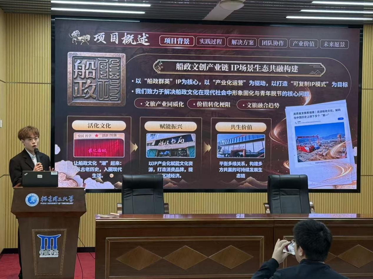 汇报结束后,评委团围绕项目逻辑架构、商业模式可行性、落地实施细节等方面进行专业点评,提出针对性优化建议。在答辩环节,选手们从容应答、思路清晰,与评委展开深入交流,展现了扎实的专业素养与良好的临场应变能力。经过激烈角逐,评委团综合项目创新性、可行性、团队表现等多维度评分,最终评选出一等奖1项、二等奖2项、三等奖3项及优秀奖5项。